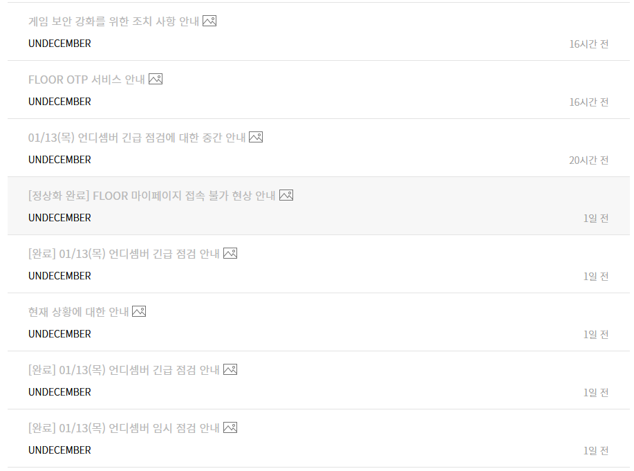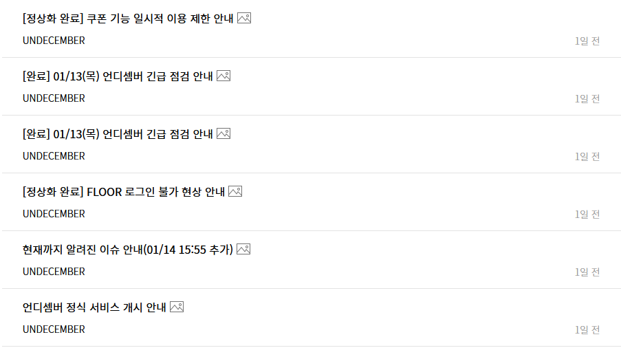 언디셈버가 13일 00시 오픈 이후로 계속된 서버의 불안정으로 긴급 및 임시 점검이 반복되었습니다.