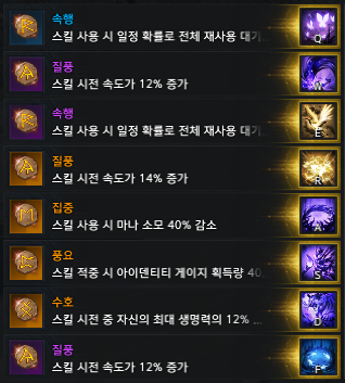 묵법:옹달샘 321 질풍 - 시전속도를 높이기위해 질풍을 사용. 두루미나래와 같이 적 처치시 쿨타임 초기화 트포가 유용해서 필수적으로 넣습니다.