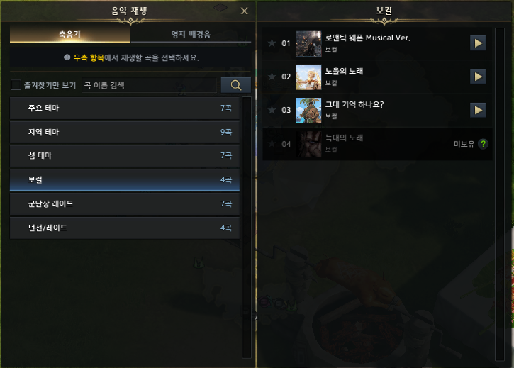 | [로스트아크] 오늘도 영지 주크박스 음원 6개 구매 완료 ㅎㅎ (0) | 2022.03.17 |