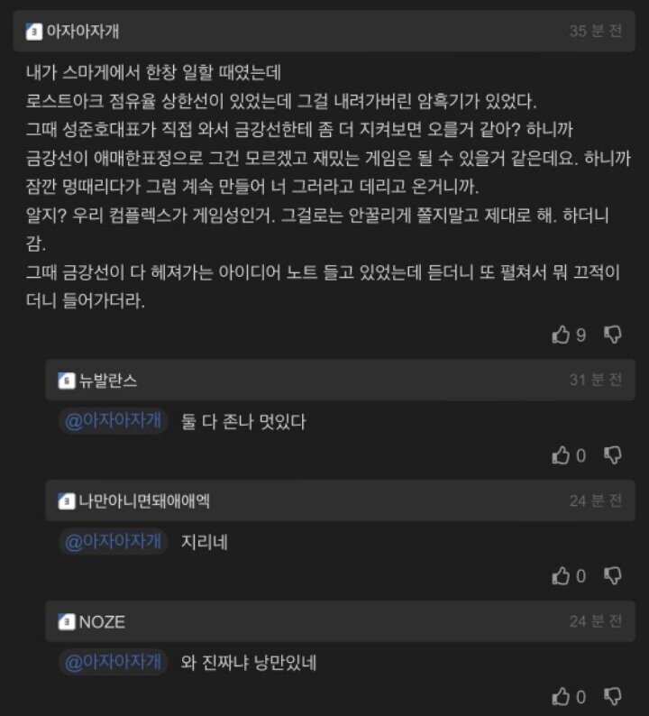 금강선 디렉터님도 그렇지만, 저 말 믿어준 윗선도 진짜 대단한듯.