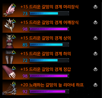 다음 품질작은 한달정도 열심히 모아서 하의 상의를 90까지 올리는걸 목표로 해 봐야겠네요.