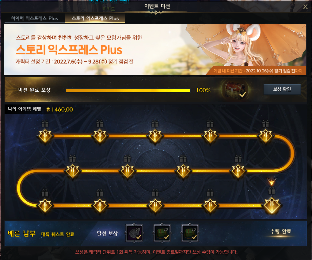 기상술사로 스토리 익스프레스 밀고, 하이퍼 익스프레스도 적용해서 끝냈습니다.
