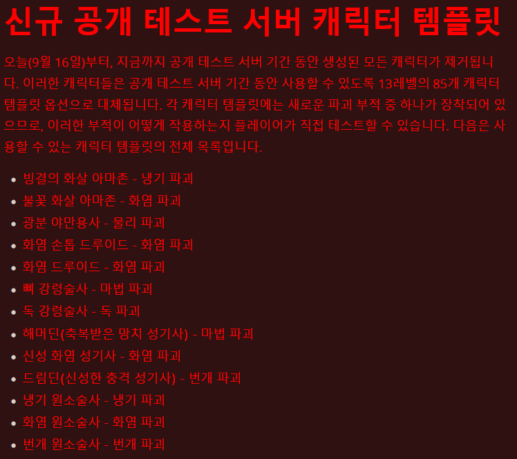 현재(글 작성 날짜 기준 2022.09.17) PTR서버에서 2.5패치 테스트가 진행 중입니다.