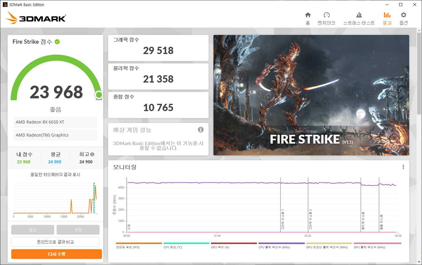 오직 그래픽카드에 영향만 받는건지는 모르겠으나(다들 이 두가지 점수 올리길래 해봤습니다.) 스펙을 적어드리자면