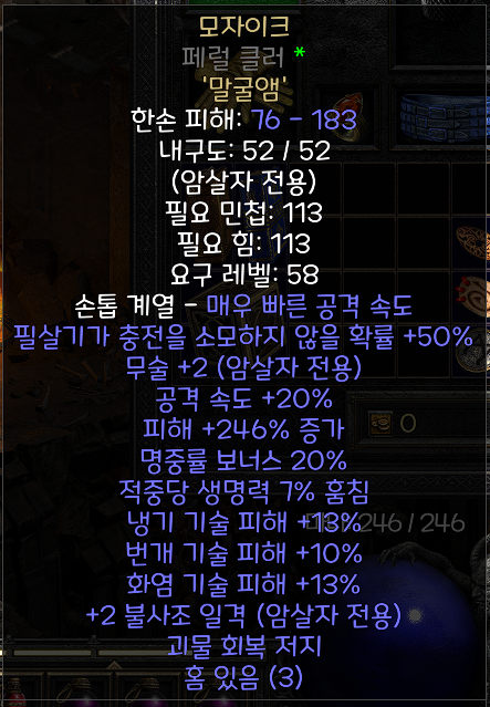 별거없는 베이스템(+2 불사조일격)에 제작한거지만 그래도 기분은 좋네용.