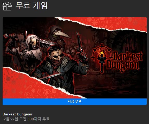 다키스트 던전이 "에픽스토어"에서 무료 배포가 진행중입니다.