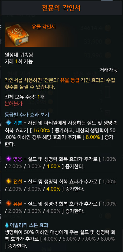 조금 맛있는 유물각인서 하나 먹었네요. ㅎㅎ
